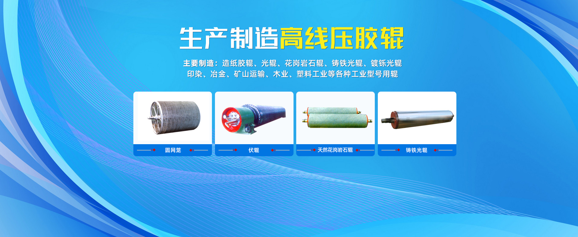主要制造:造紙膠輥、光輥、花崗巖石輥、鑄鐵光輥、鍍鑠光輥、印染、冶金、礦山運輸、木業(yè)、塑料工業(yè)等各種工業(yè)型號用輥